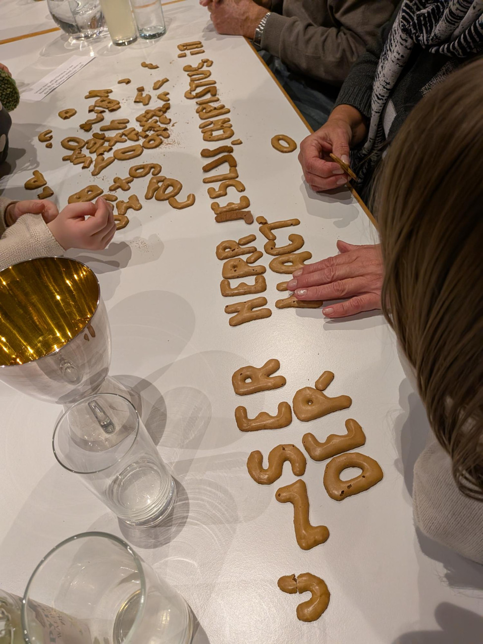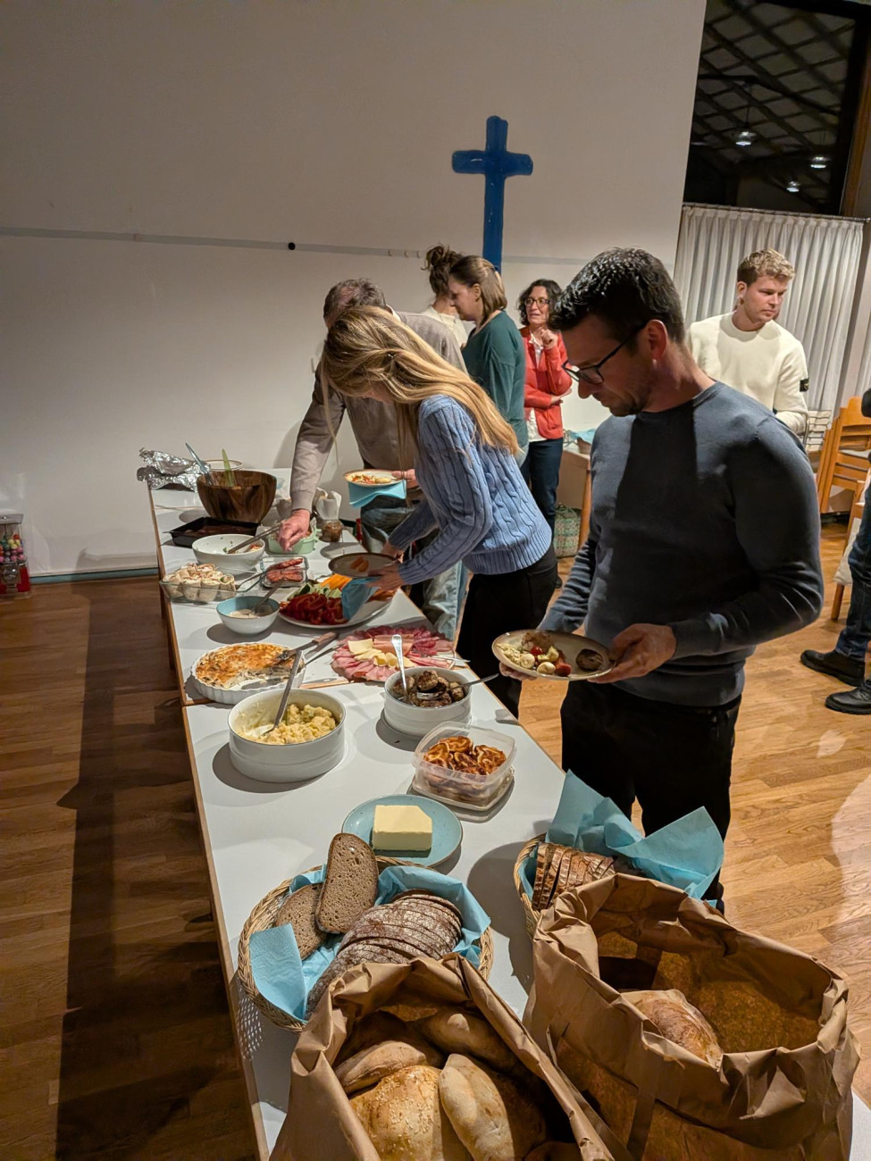 Mitte November waren die Familien, Patinnen und Paten der Konfis zu einem besonderen Tischabendmahl eingeladen. Die Konfis bereiteten drei Wochen lang den Abend vor von der Einladungskarte über die Platzsets bis zu inhaltlichen Gesprächsimpulsen. Die Familien kamen mit vielen Gästen (sogar ein Pate aus Augsburg war für den Abend gekommen). Sie stellten das leckere Essen mit der zugehörigen Familiengeschichte beim Mitbringbuffet vor und teilten es. Angeregte Gespräche erfüllten den großen Saal, bis der Abend mit einem fröhlichen Tischabendmahl endete.